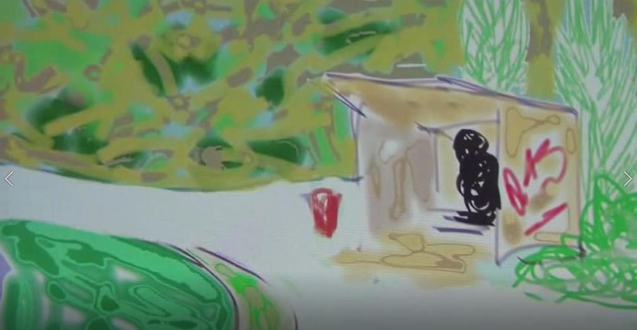 Bestemming Wolvenschans: Een Ipad tekening van de bushalte, die het dichtst bij de Wolvenschans van Hitler's megabunker complex, nabij de Pools-Russchische grens ligt.