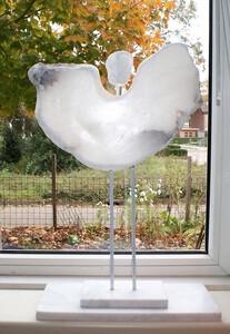 Dit beeld is ontstaan uit inspiratie van het zeilen en observeren met de bruine vloot. Het bovenste deel is champagnekleurige albast en het onderste deel is uit een stuk gezaag iepenhout. In de tekening van het albast zijn prachtige bruine/oranje kleuren, die vooral in het licht naar voren komen.