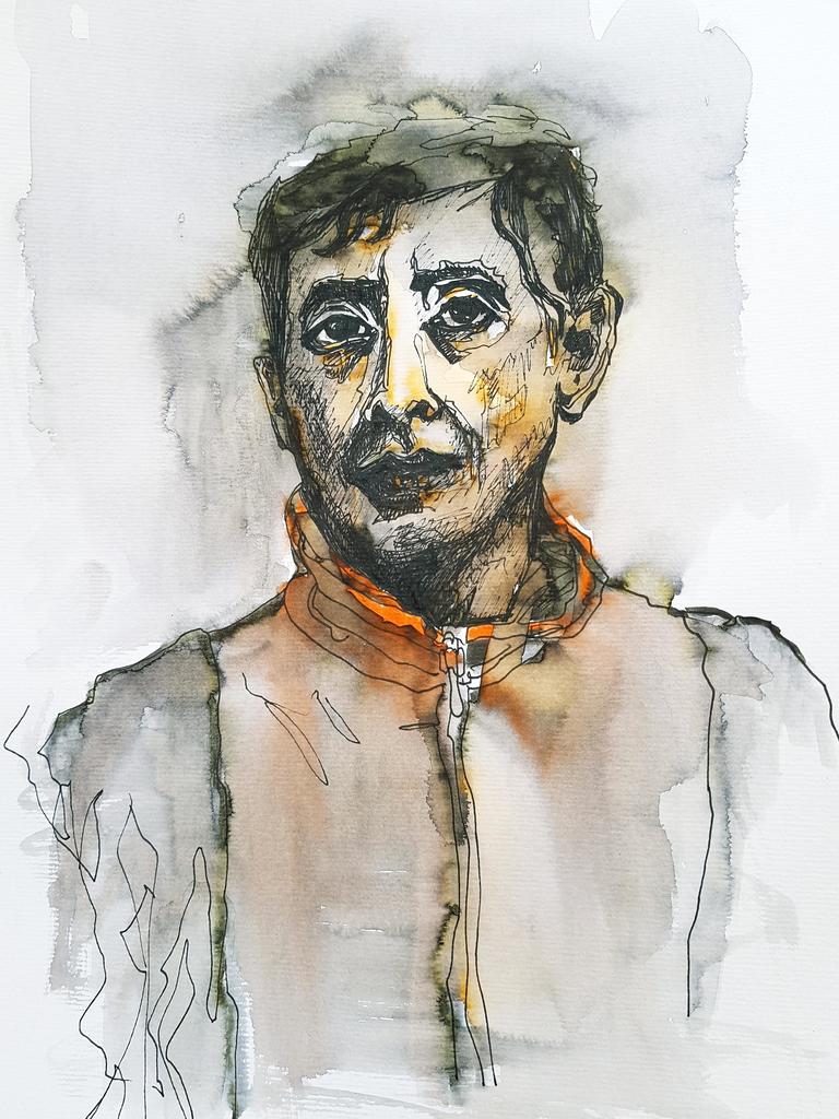 Portret Man Aquarel Portrait Conciërge Caretaker