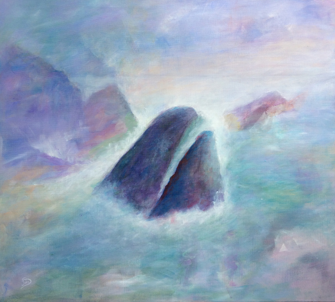 Met indrukwekkende rotskusten in het achterhoofd, kwam dit op het doek.Boeiend vind ik ook de kleurschakeringen in lucht en water.