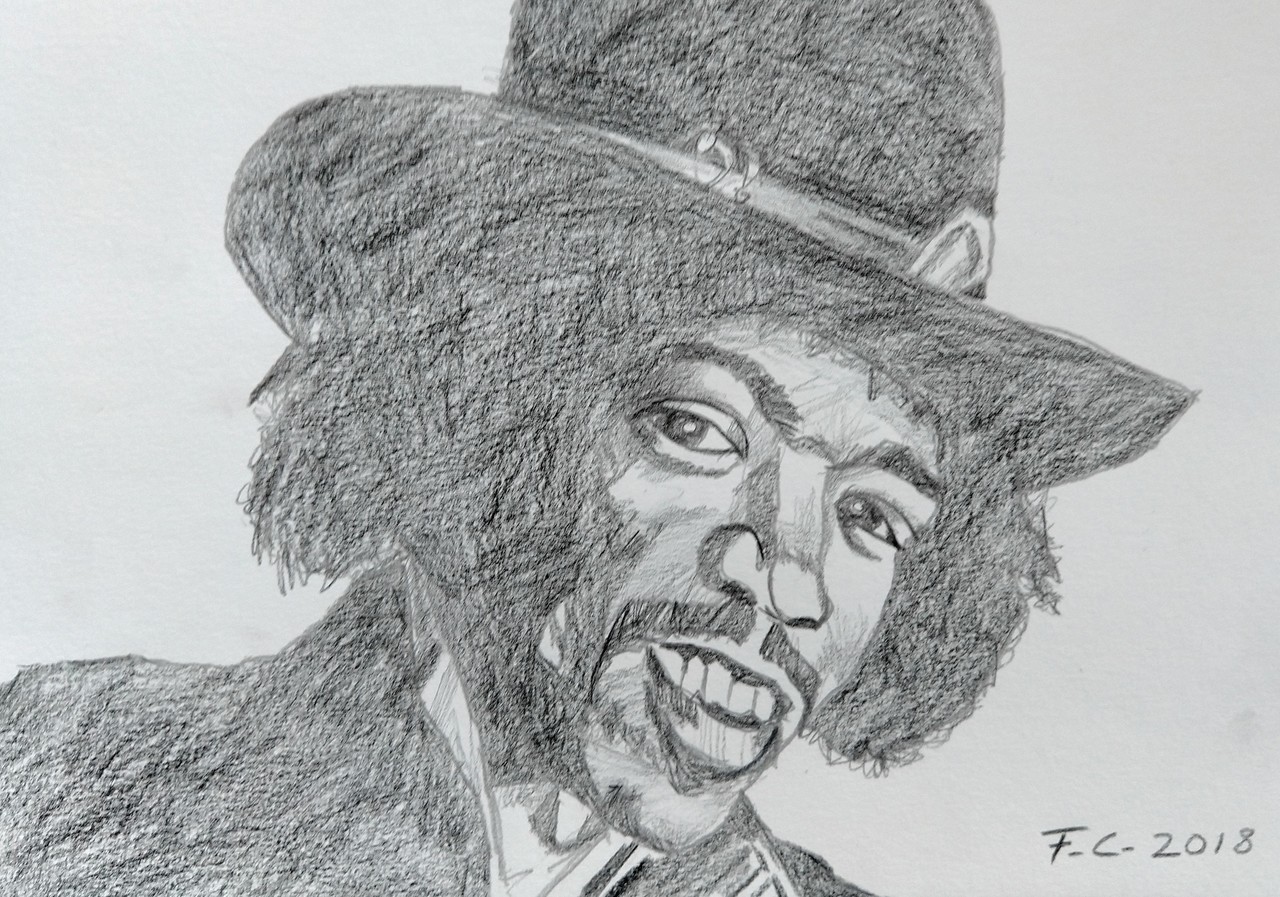 Jimi Hendrix (1942-1970) Tekening in potlood.