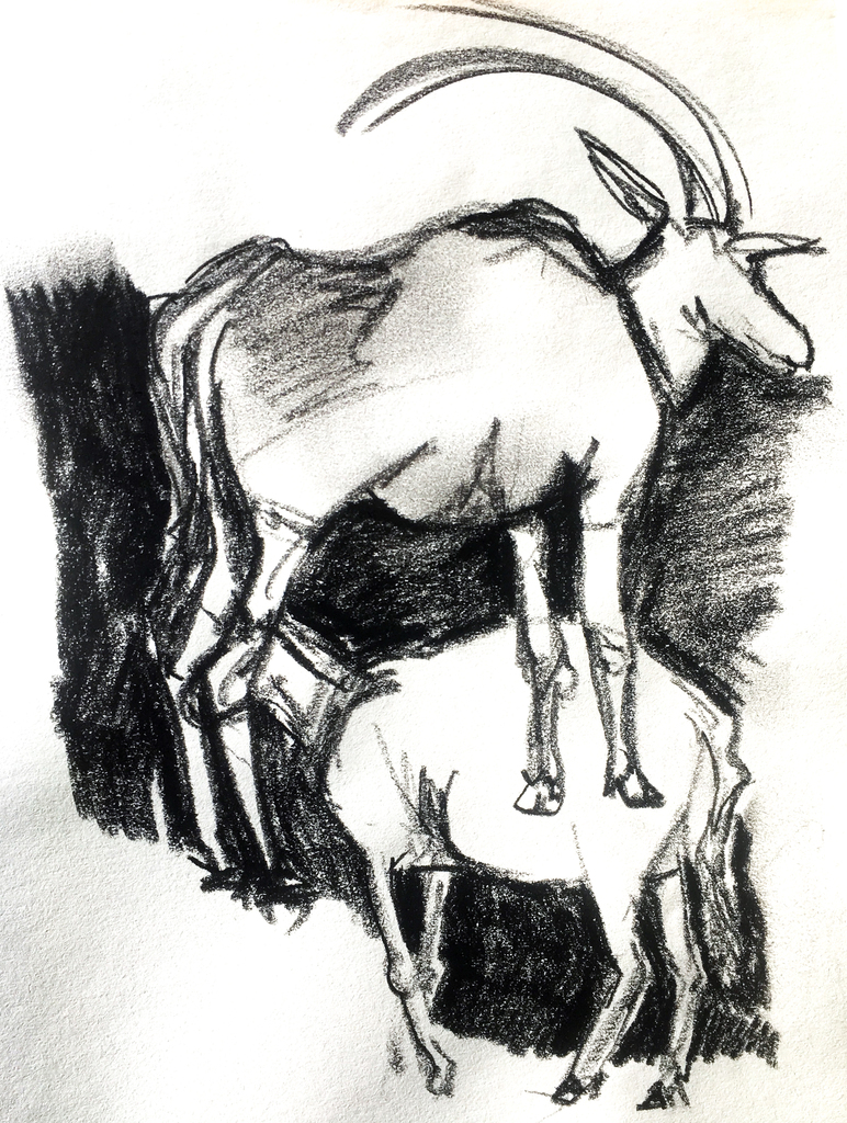 twee bokken doorelkaar geschetst in Artis