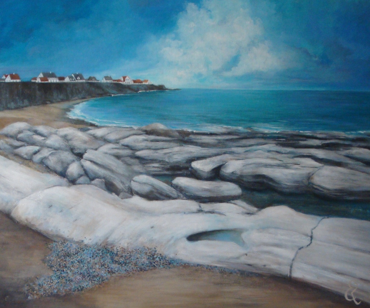 Wit Zee Blauw Acryl Frankrijk Realistisch Kust Visserddorp Krij
