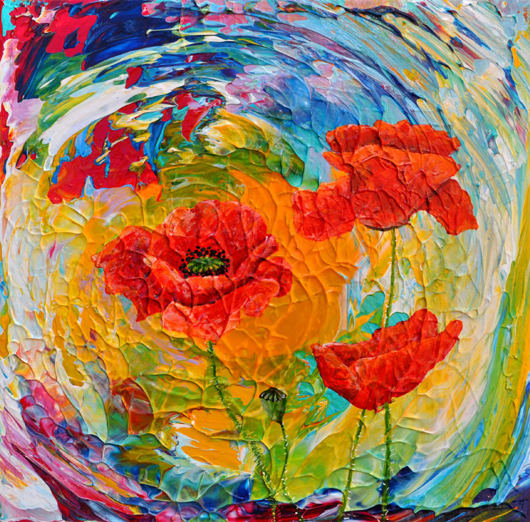 Klaprozen, 30x30x4 cm. VERKOCHT