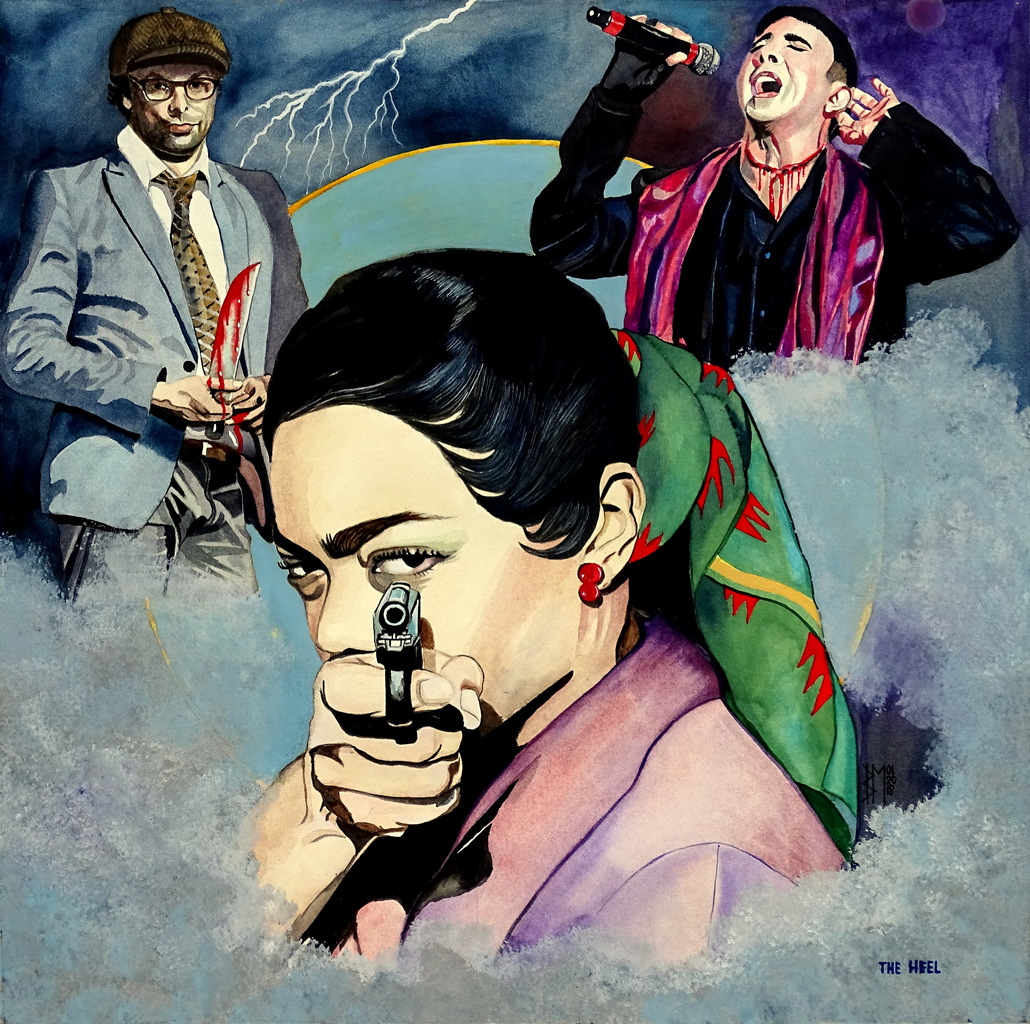 Mixedmedia van aquarel,gouache en wat pastels ,op zwaar katoenpapier. Maat 48x48cm , ingelijst 60x60cm. Dit schilderij werd speciaal geschilderd voor het kunstboek,dat samen met het CD-album en vinyl-LP van de band The Bullfight werd uitgegeven .Op 9 november 2019 is de release van dit muziek/kunst set .Tegelijk zal dit schilderij te zien zijn tijdens een expositie met schilderijen uit dit kunstboek , in Media/boekwinkel Donner , Coolsingel ,Rotterdam.