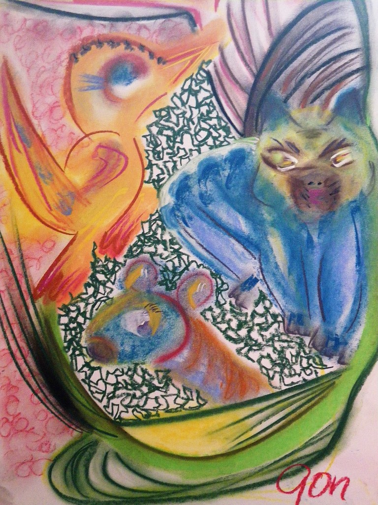 Mijn naam is Gon de Wolf-Hoogland. Enkele jaren geleden ben ik begonnen met pastelkrijt te "schilderen". Ik ben autodidact en vind het een heerlijk materiaal om mee te werken. Ik teken en veeg totdat voor mij een zekere fantasiewereld is ontstaan.