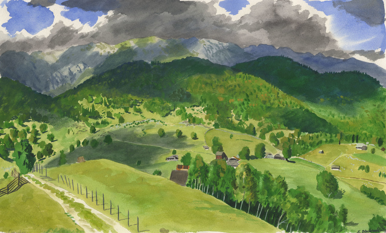 Schilderij Figuratief Landschap Groen Art Aquarel Kunst Bergen Painting Green Landscape Realism Figurative Watercolor Mountains Watercolour Roemenië Romania
