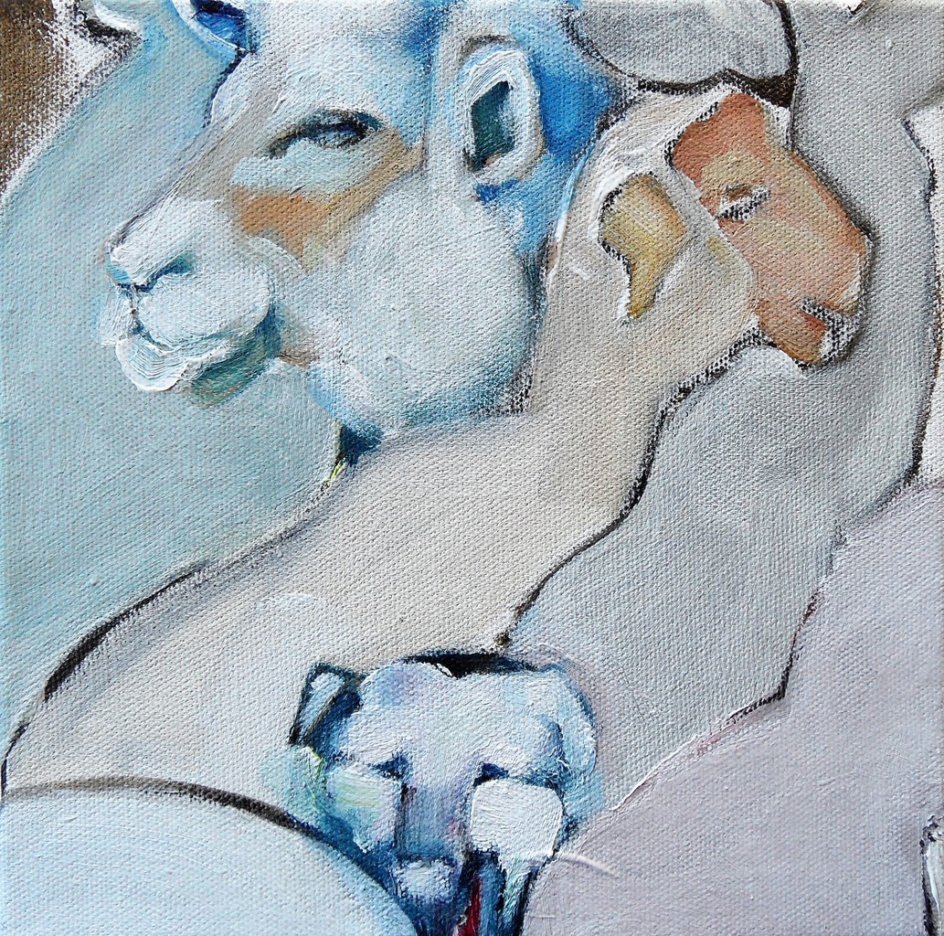 Wit Figuratief Oranje Blauw Acryl Dier Doek Abstraherend Hond Schaap Drijven