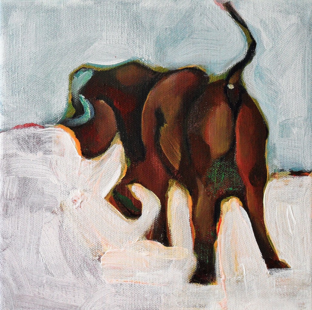 Wit Figuratief Acryl Bruin Dier Koe Doek Abstraherend Achterkant Lopen Zijkant