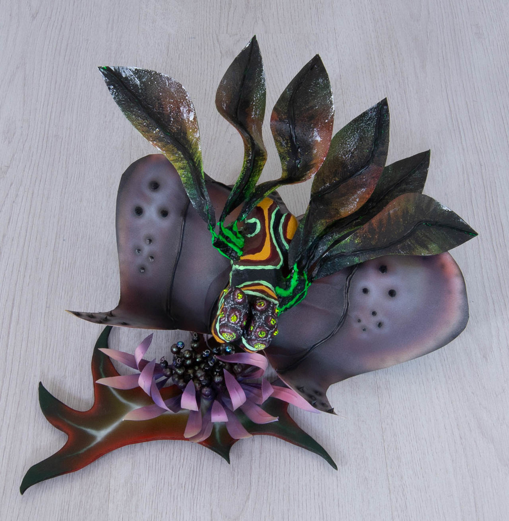 Tijdens het experimenteren zonder een doel voor ogen te hebben, groeide het idee om een bizarre creatie te maken. Ik vond dit werkje nog het meest op een zeer bijzondere insect lijken.