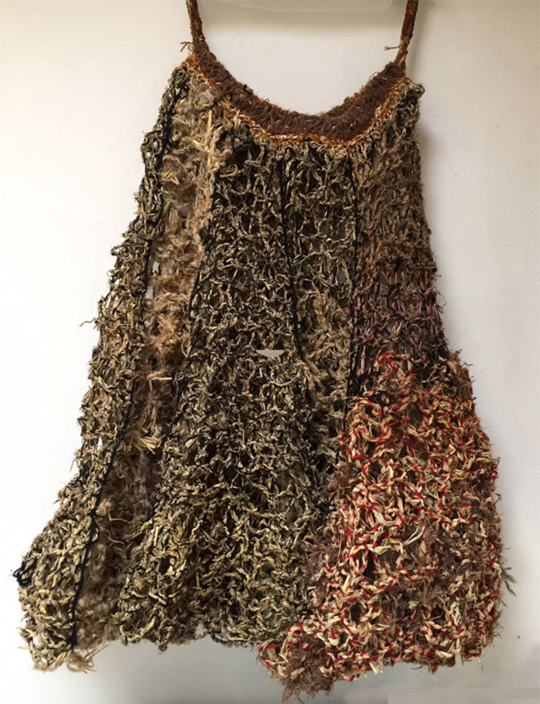 Met gevlochten gras heb ik een banenrok gebreid. Deze rok is te dragen, maar niet erg comfortabel
