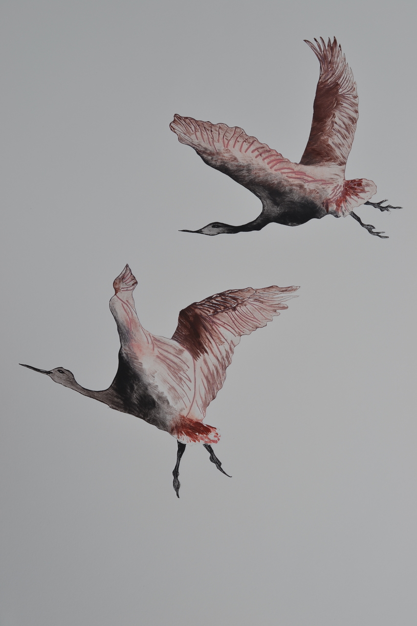 Kraanvogels III / Grues III - droge naald - uitgezaagde zinkplaatjes - meerkleuren druk - oplage 1/1