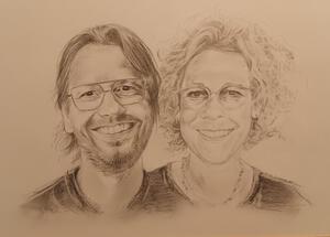 Yvonne (1970), Den Bosch, tekent portretten van foto. Zwart-wit, aquarelpotlood, realistisch of met extra.