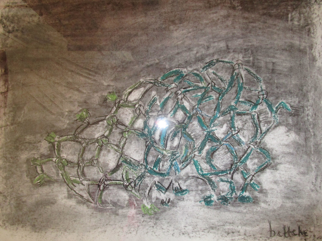 Mixed Media Krijt Gemengde Techniek Houtskool Net Charcoal Visnet Fishing Chalk