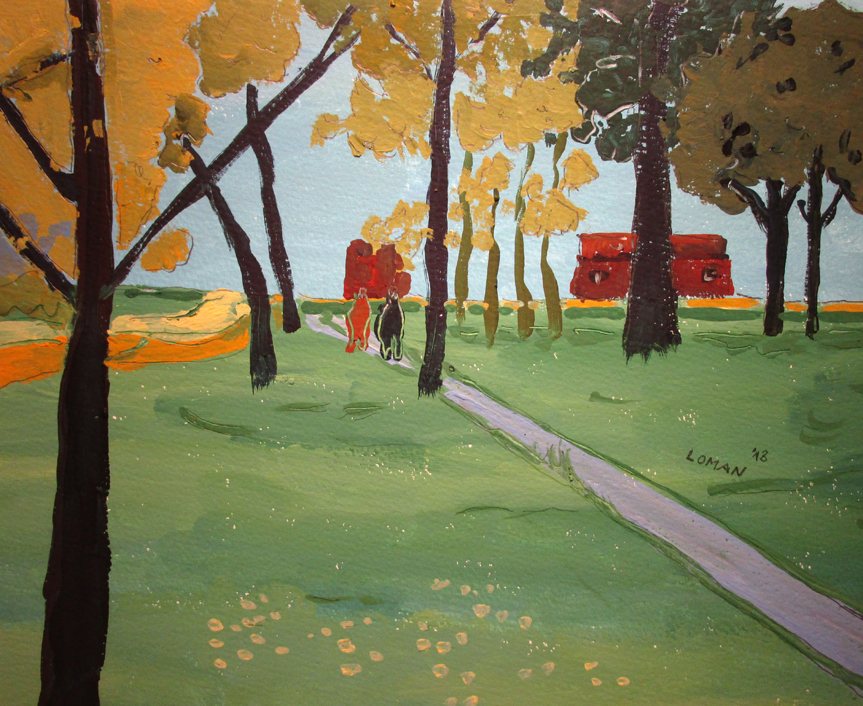 Karel Loman schildert expressief. Zijn landschappen en stads- en dorpsgezichten zet hij in heldere kleuren op papier. De sfeer van het landschap staat bij hem voorop. Loman werkt voornamelijk met temperaverf, aangevuld met inkt of potlood.