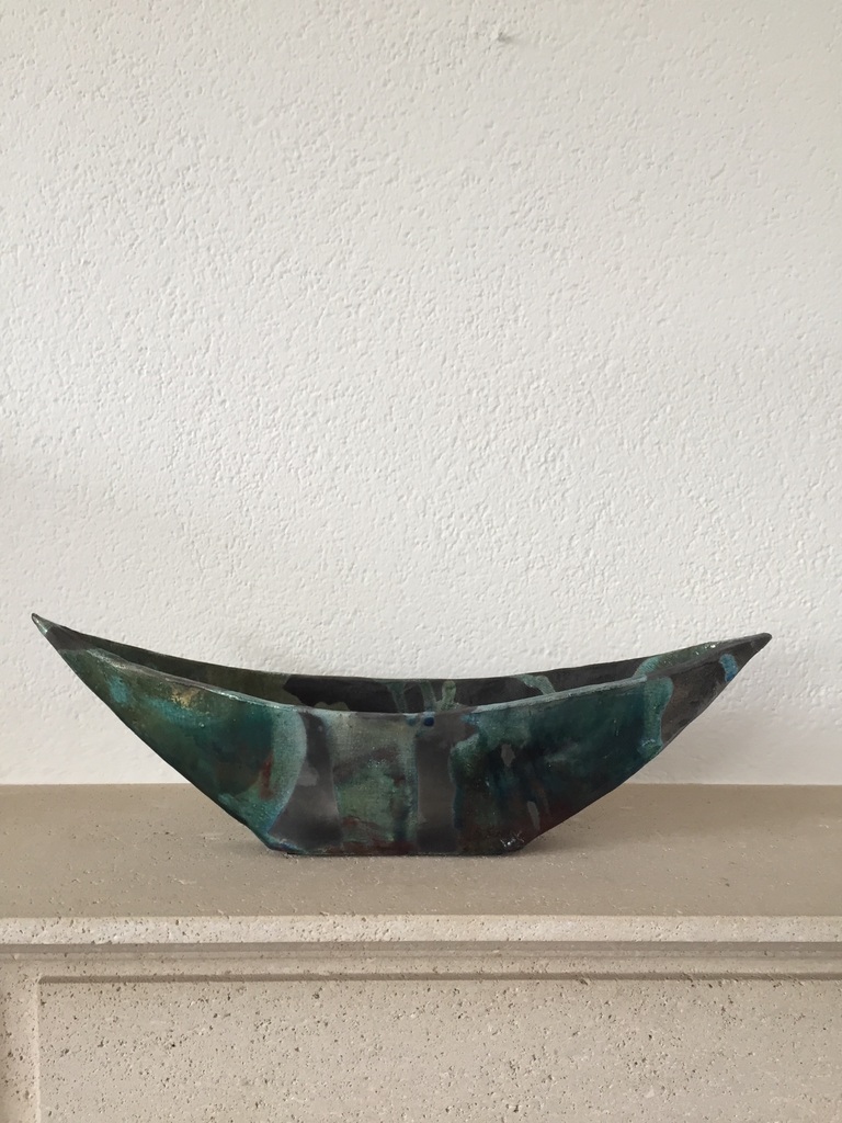 langwerpig spits toelopende vaas (raku -techniek)