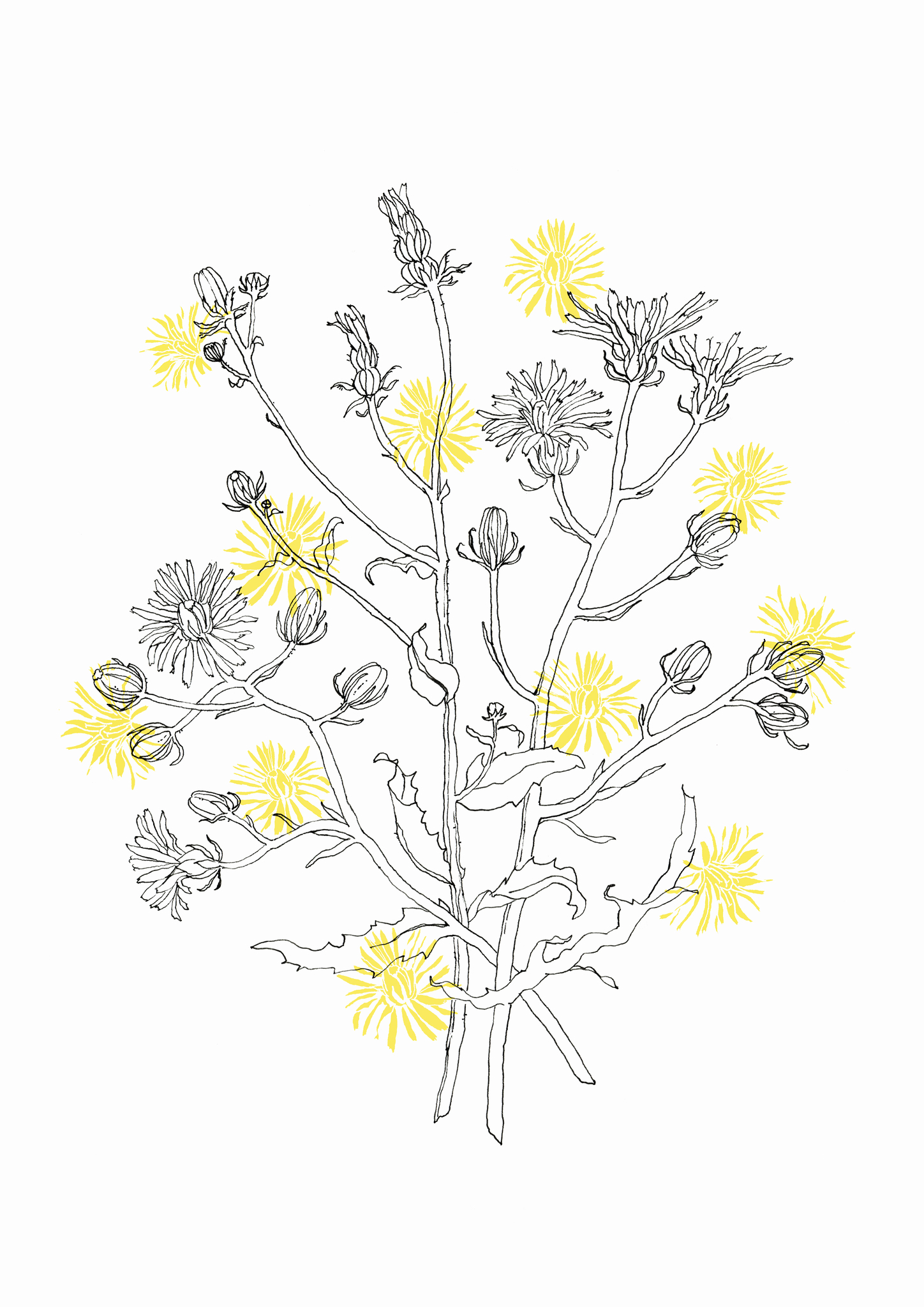 Geel Yellow Bloemen Tekening Natuur Drawing Flowers Print Nature Veldbloemen Wildflowers Hawksbeard Streepzaad Bitterkruid Hawkweed