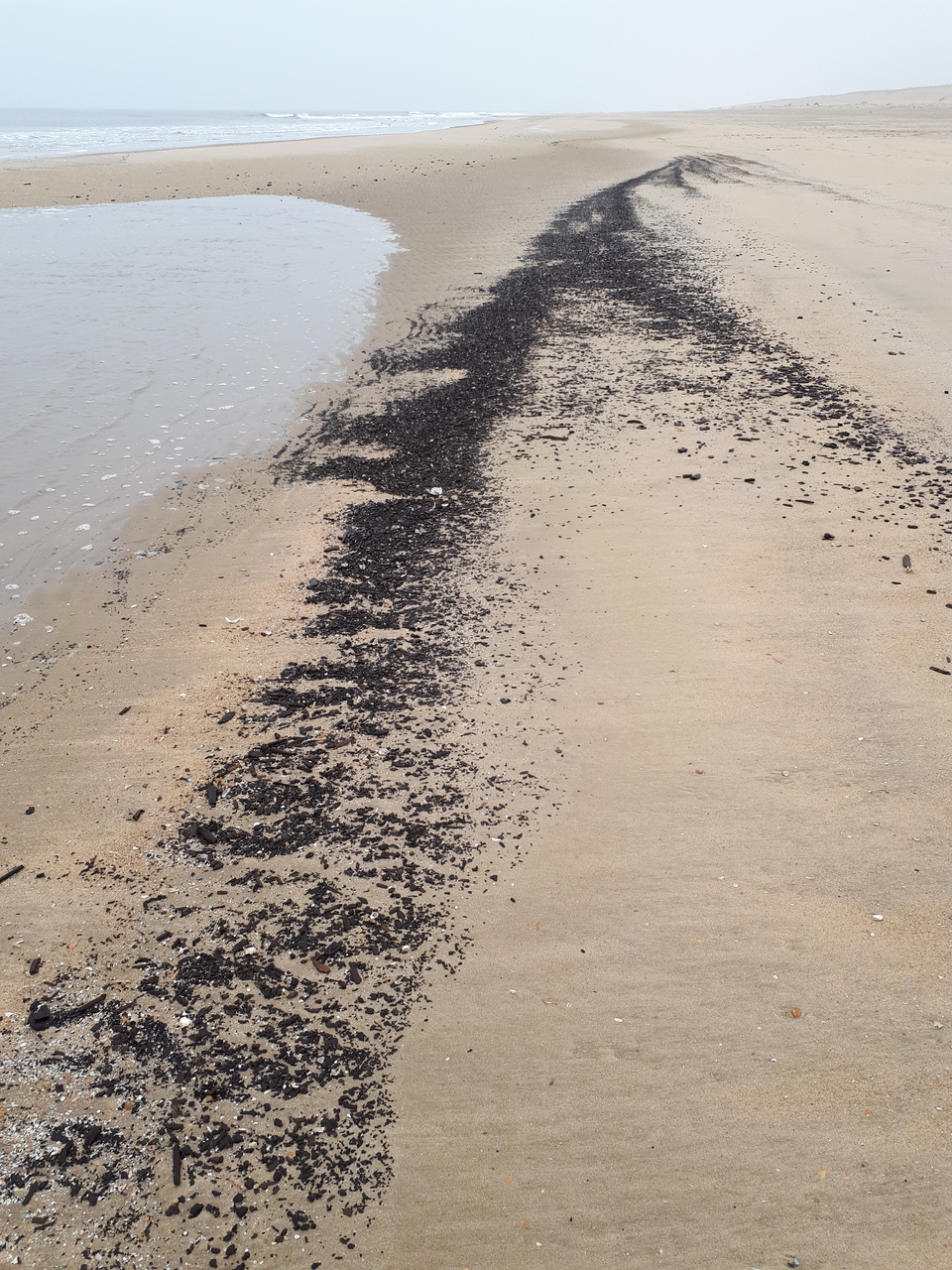 Zee Strand Zwart Patroon Eb Vloed Lijnen Zand Vervuiling Rest