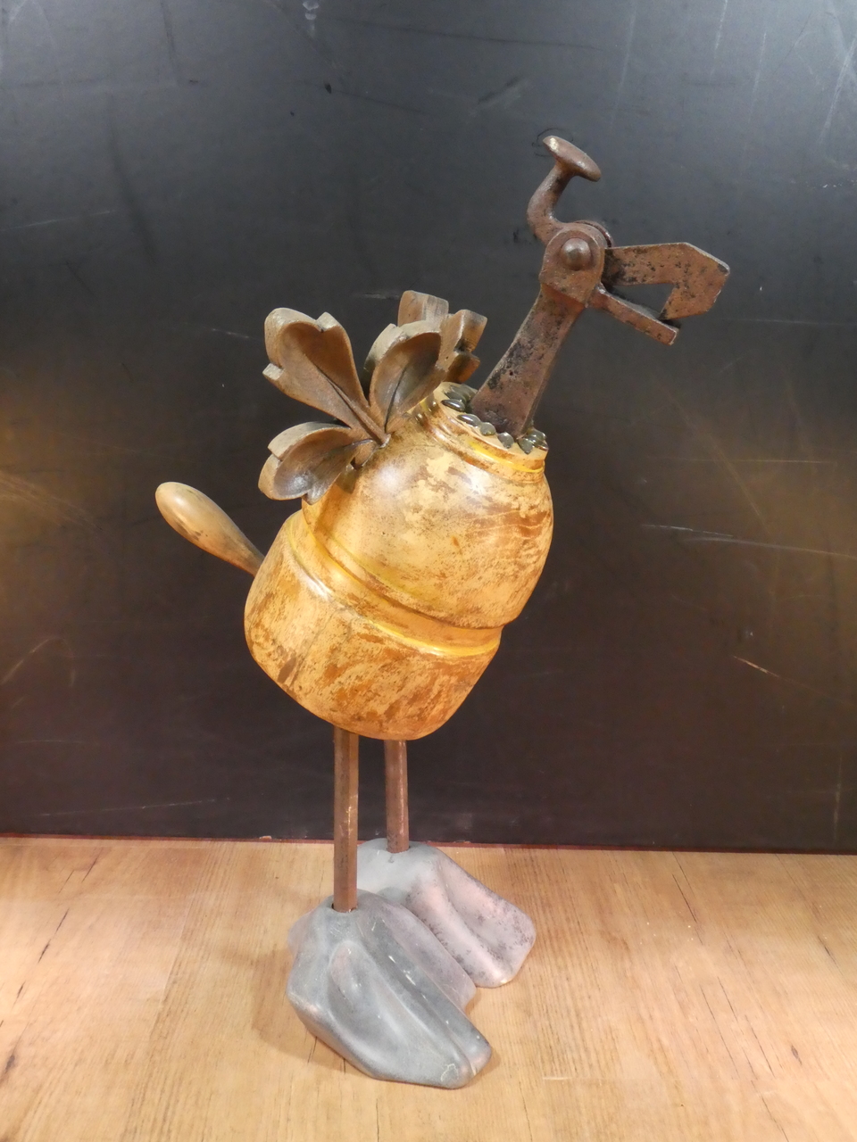 Dodo vogel samengesteld met diverse materialen o.a. metaal ,steen en hout.
