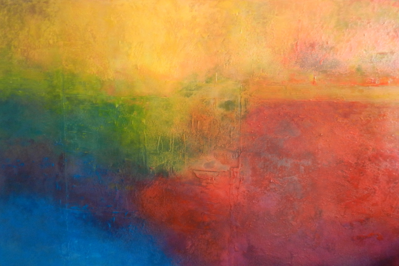 Schilderij uitgevoerd op linnen met grove structuurlaag in de ondergrond. Geinspireerd op het landschap wat vanuit het gevoel ontstaan is.