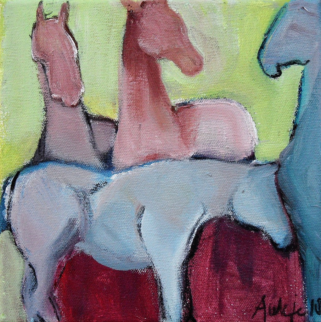 Figuratief Grijs Rood Blauw Acryl Groen Bruin Dier Doek Abstraherend Paard Staand