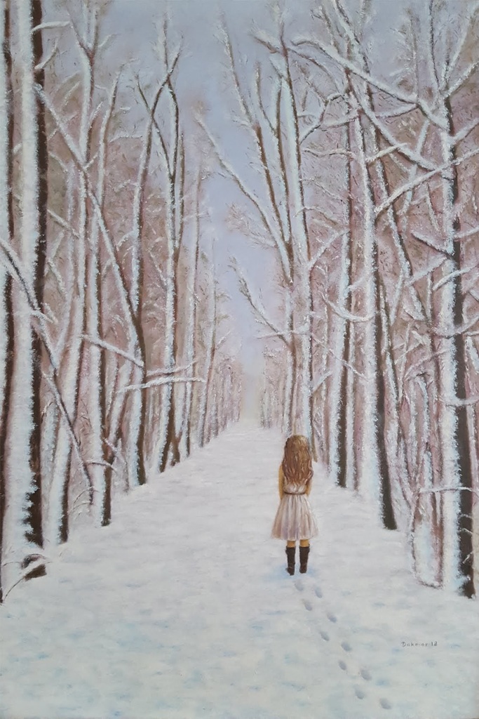 Fantasie, meisje in het winterse bos