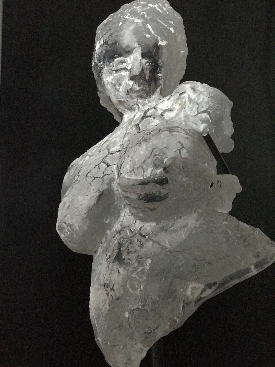 Verbeelding van een vrouw met borstkanker in loodkristal.