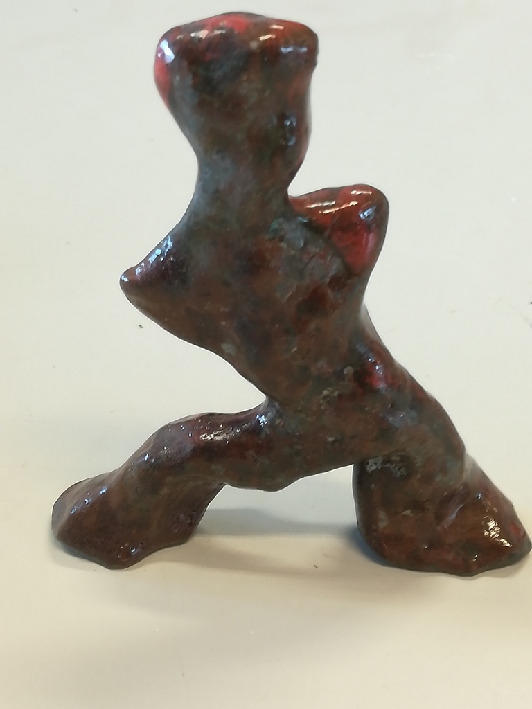 Expressief beeldje, keramiek, raku gestookt.