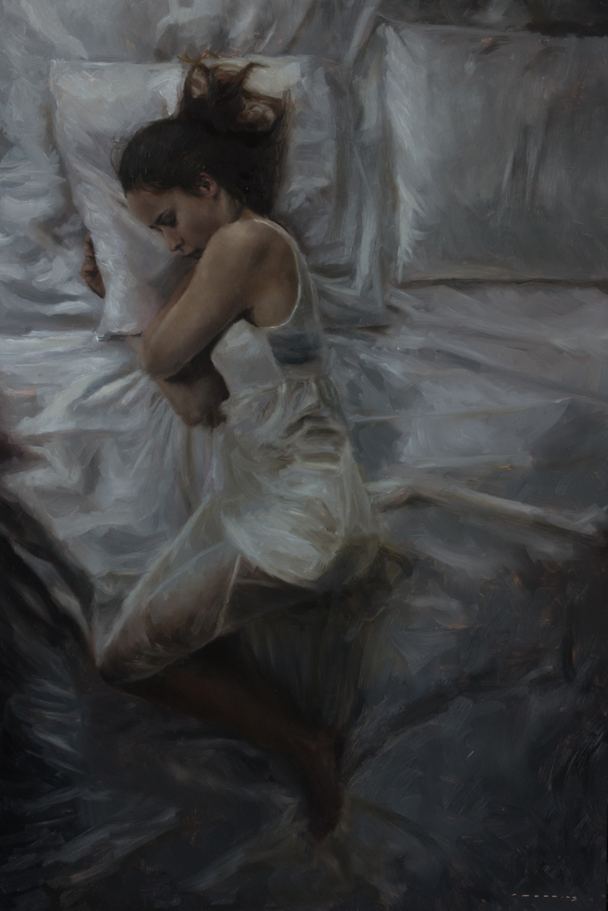 Figuratief Model Olieverf Oilpaint Gekleed Realisme Realism Bed Figurative Droom Dreaming Lucide