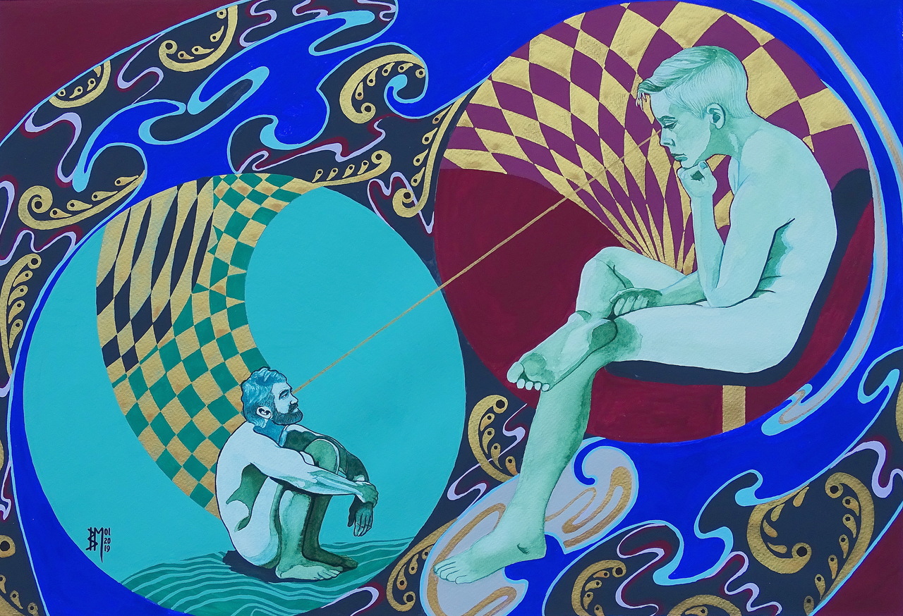 Mensen Man Naakt Nude Gouache Fantasie Mannen People Mixedmedia Kerst Men Bastiaanmol