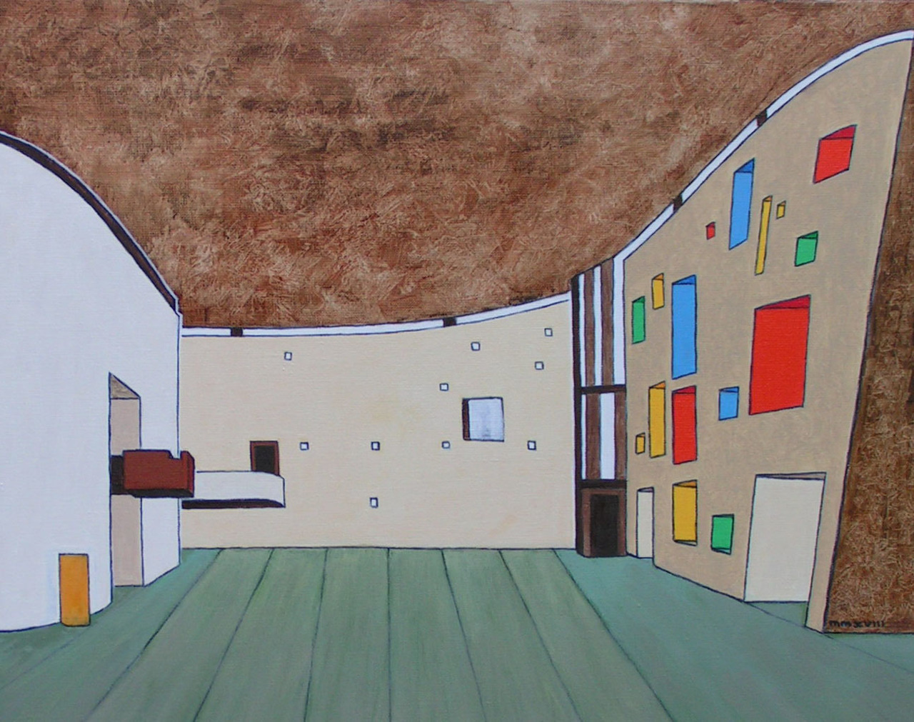 Mijn schilderijen bestaan uit gebouwen en mensen.