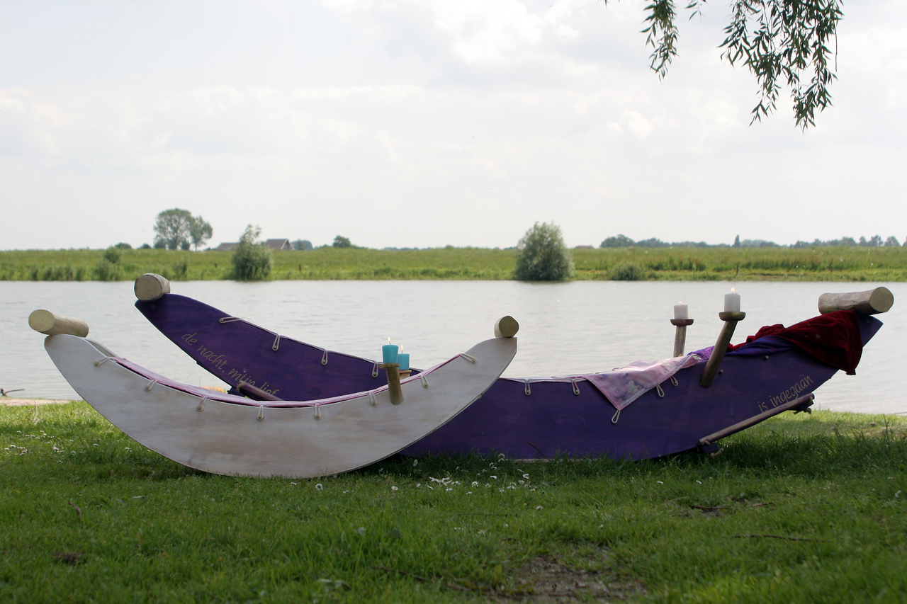 Ontwerp uit 2005. Soort egyptische maanboot om de rivier de Styx mee over te varen. Te gebruiken als grafkist. Fotografie Zefanja Hoogers