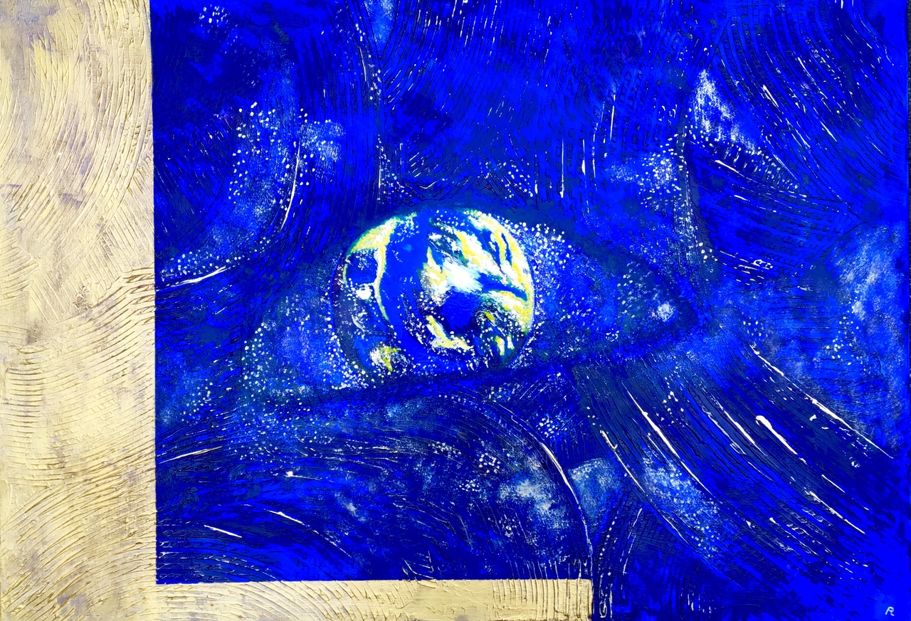 universum *Dit schilderij is met acrylverf en penseel opgebracht. Ook heb ik gebruik gemaakt van spatels. *De zijkanten zijn meegeschilderd. * Vernislaag is aangebracht mat/glans. *De canvas heeft een hout frame met spies opgespannen. *Het schilderij is gesigneerd op de achterkant met de eerste letters van mijn voor en achternaam (RP) Renate Peters en met de datum dat het schilderij is gecreëerd. Aan de voorkant is er de letter R (van Renate) te vinden rechts onderin.