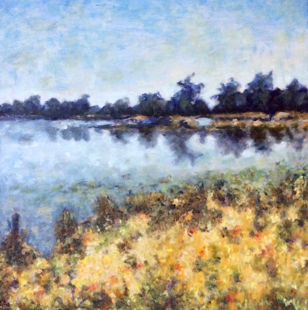 Heerlijk om een gevoel met een eigen draai aan de werkelijkheid op een abstraherende wijze op het doek te zetten.