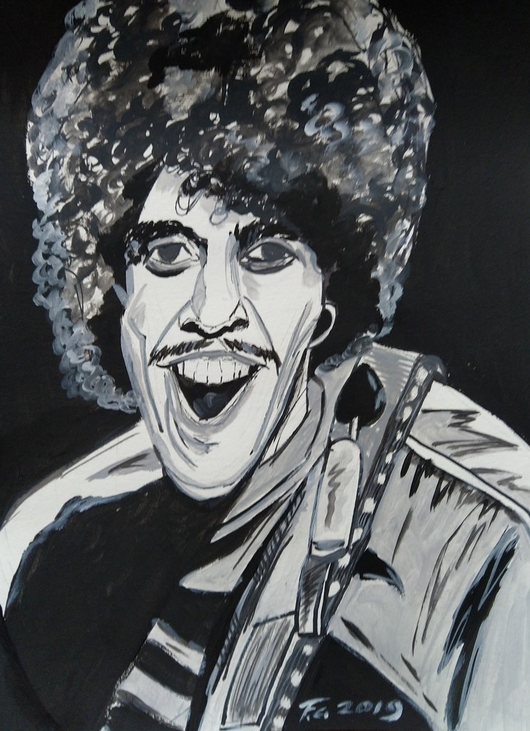 Phil Lynott (1949-1986) zanger, bassist en componist van de voormalige ierse rock band Thin Lizzy.