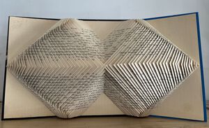 Ik bedacht dit idee omdat ik graag mandala's vouw van gekleurd papier. De pagina's zijn gedeeltelijk ingesneden en hier en daar iets afgeknipt, maar ik heb geen lijm gebruikt bij dit werk.