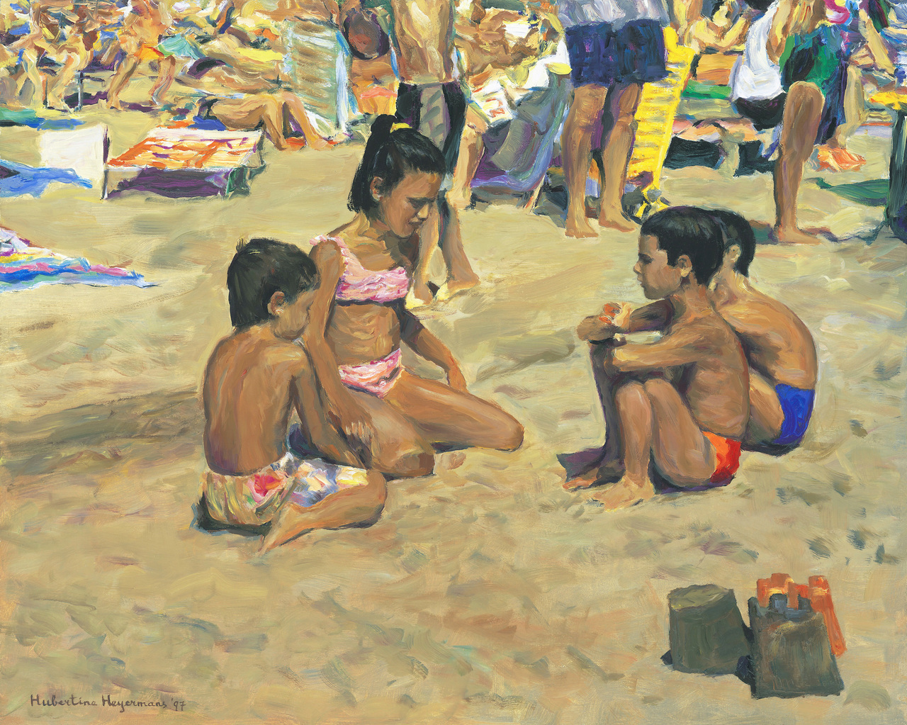Strand Kinderen Spel Spain Children Praten Playing Sitting Talking Conversatie Benidorm España Planning Organising
