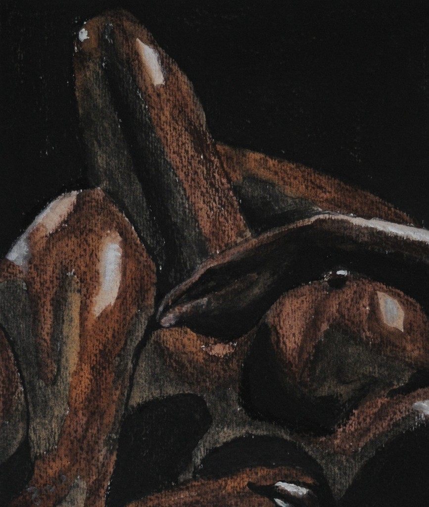 Een dames landschap in houtskool, ingeverfd met koffie en gouache highlights, december 2016.