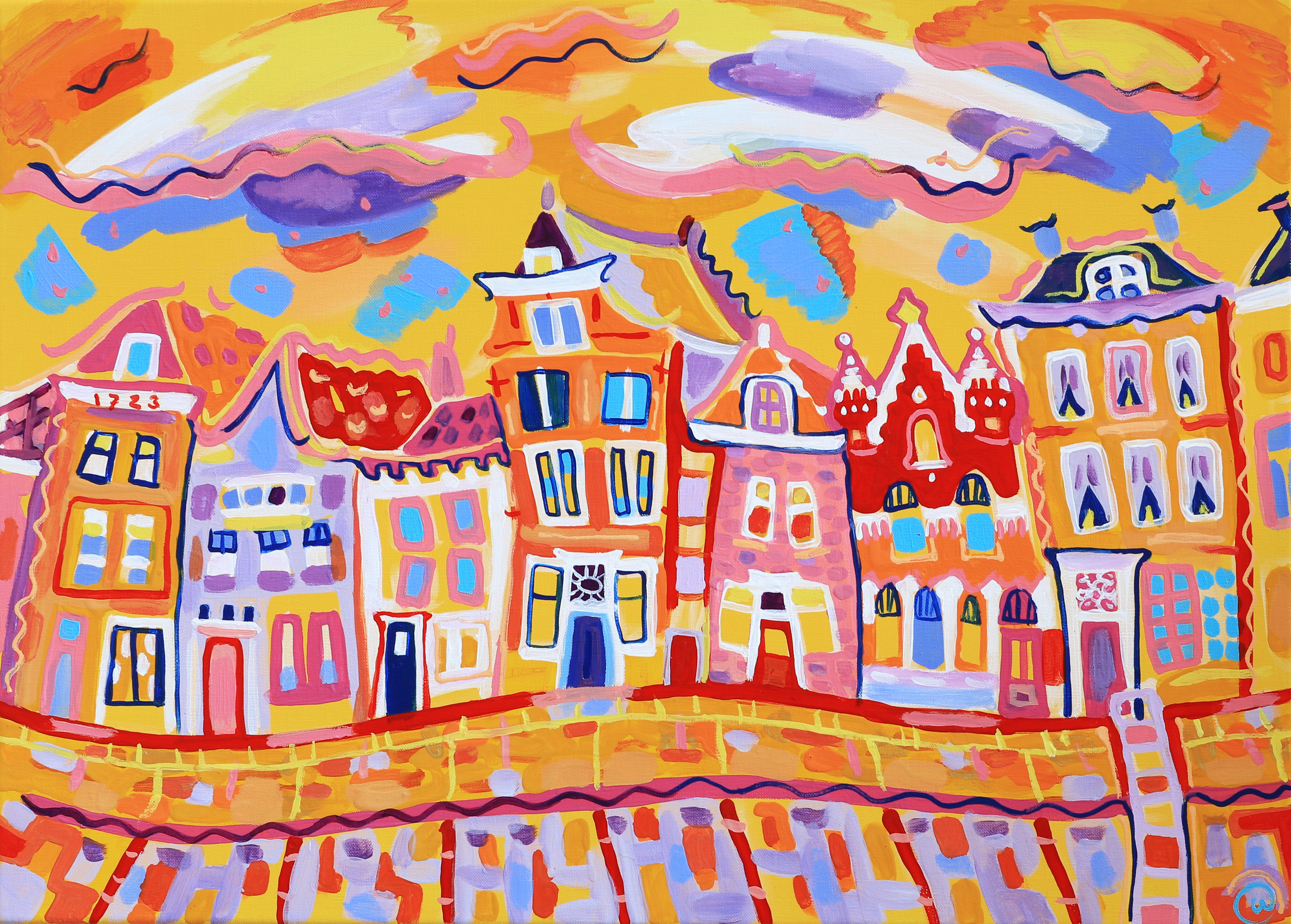 Wiet (Wieteke Hendrikx) laat zich leiden door kleur. De kleuren die zij ziet én de kleuren die zij wil zien. Zij schildert herkenbare stadstaferelen en natuurgezichten.