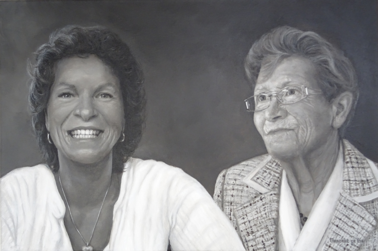 Manon en haar moeder in opdracht geschilderd van verschillende foto's.