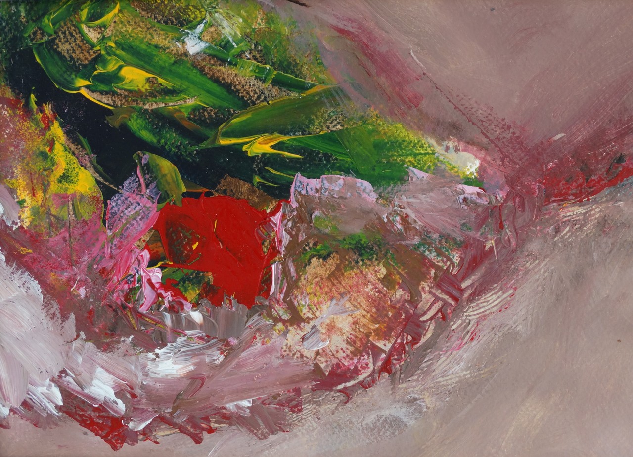 Schilderij Abstract Rood Acryl Groen Roze Peter Elias