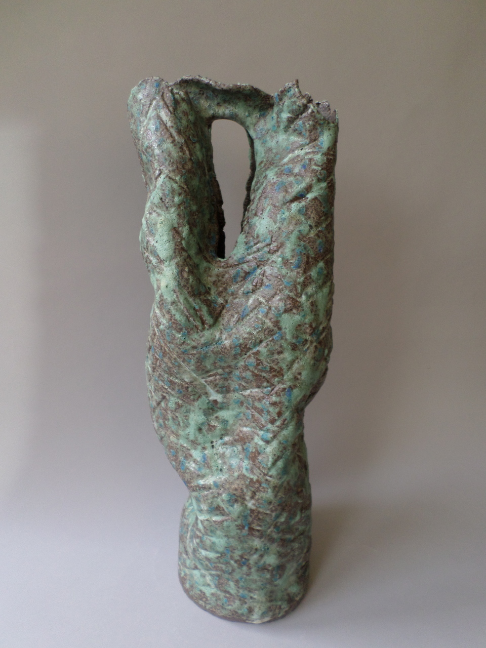 De objecten die ik maak zijn handgevormd. Ze zijn vooral bedoeld om naar te kijken, niet om te gebruiken. Ik hou van de huid van de klei en laat die graag zien. Door niet altijd het hele oppervlak te glazuren blijft het ruige uiterlijk van het materiaal zichtbaar. De laatste jaren heb ik veel met asglazuur gewerkt. Die as is steeds anders van samenstelling, waardoor het glazuur een grote mate van onvoorspelbaarheid heeft. Dat houdt het spannend.