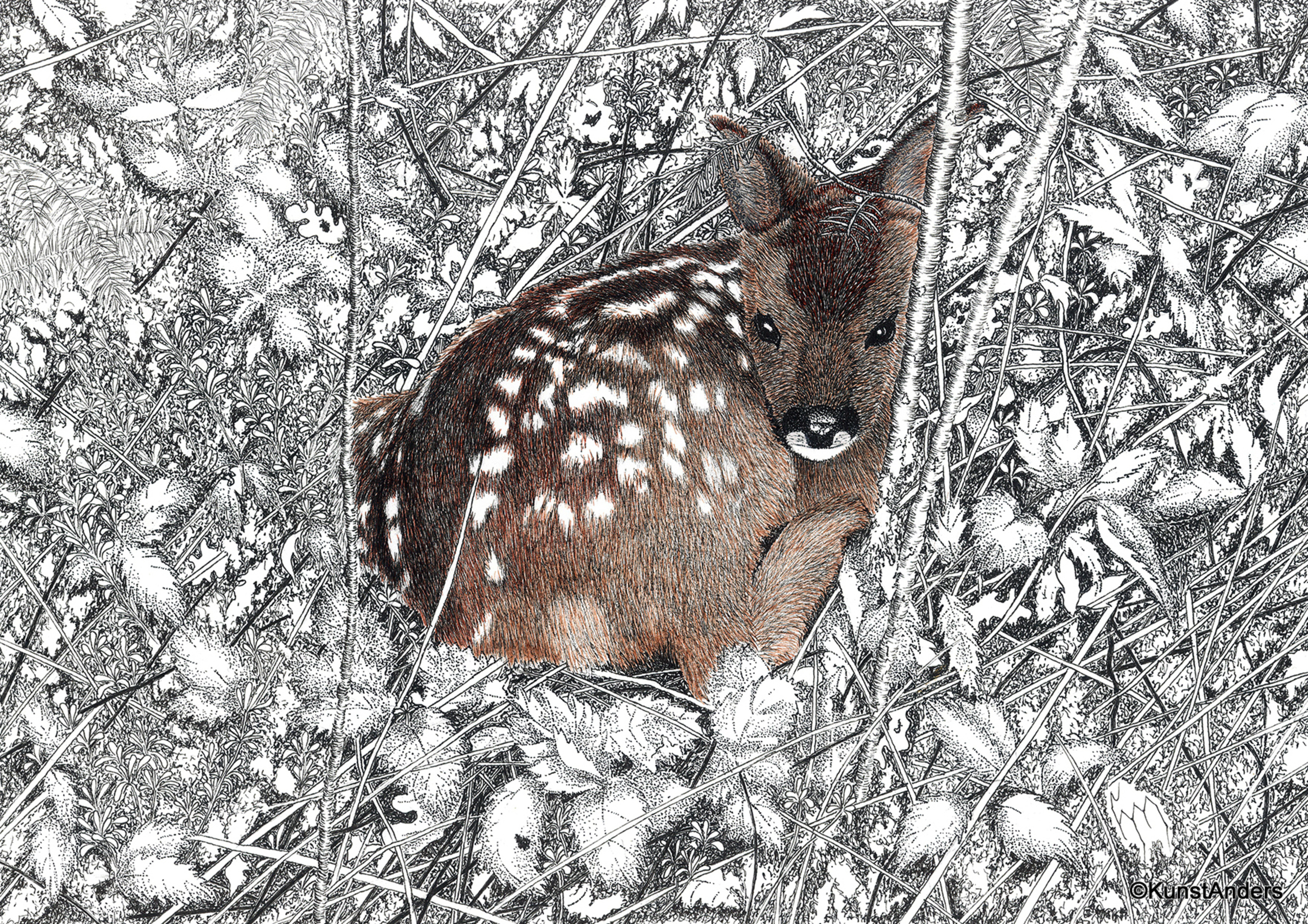 Het was tijdens een wandeling met onze twee (aangelijnde!) hondjes dat ik ze ineens zag, eerst de een en meteen daarna de ander, goed verborgen achter een dichte struik, maar opgeschrikt door onze komst gingen ze er snel vandoor en wist ik op dat moment wat mijn volgende onderwerp zou worden....