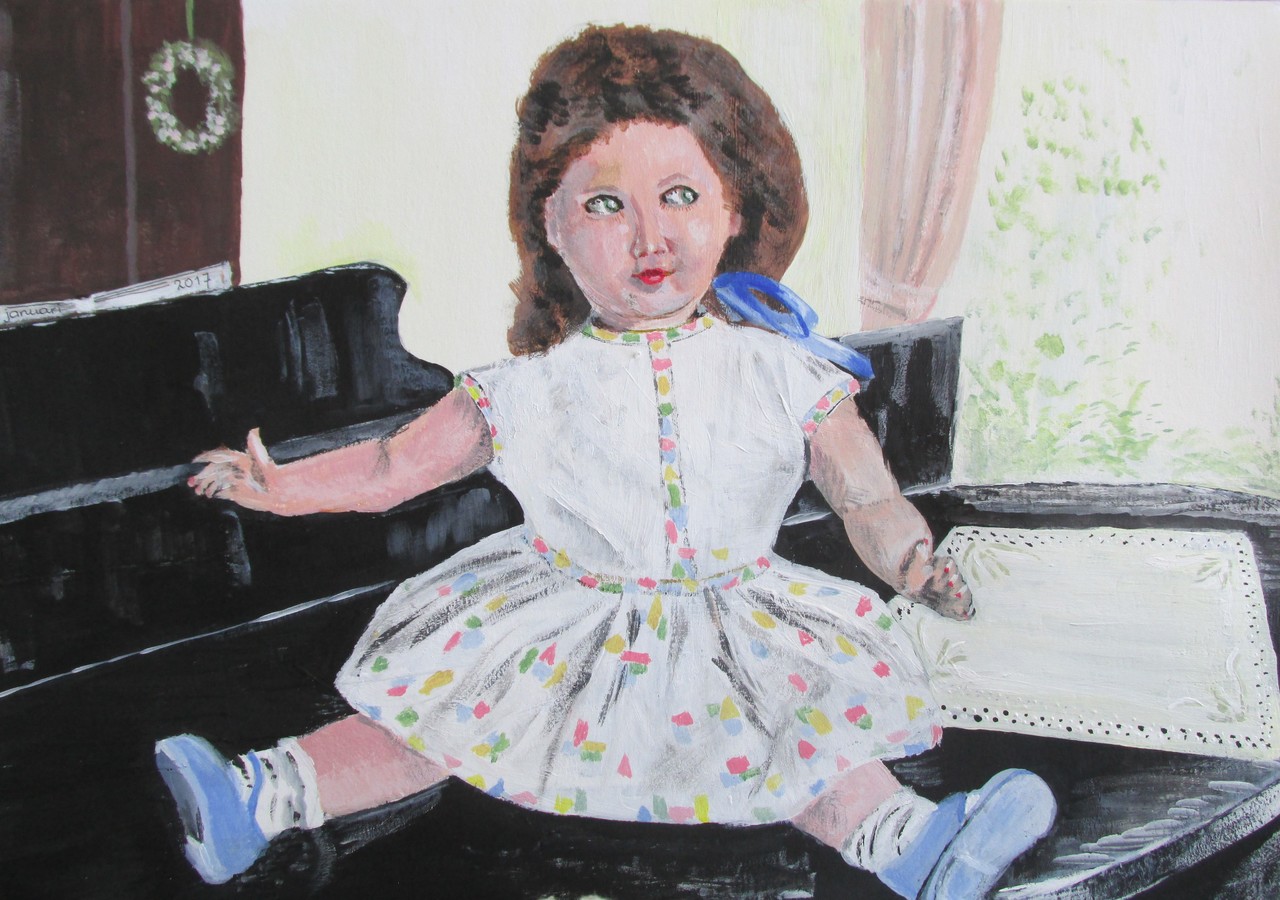 mijn oude speelpop. Het schilderij is met passe partout en lijst 40 cm. x 50 cm.
