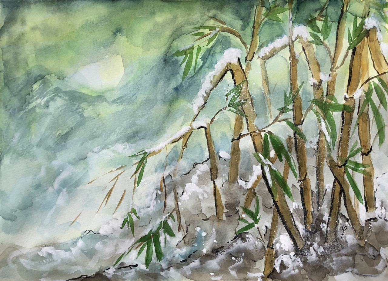 Japanse Haiku “Ik hoor hoe de sneeuw in het nachtelijk duister bamboestengels breekt”