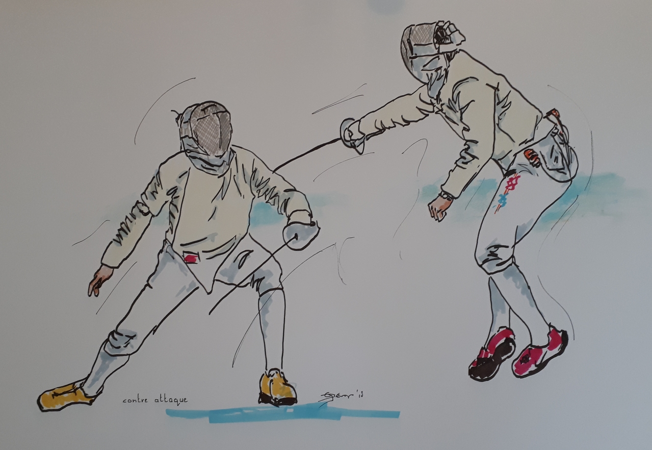 Georges Dérop, kunstschilder met als thema Sport en bewegen. Gefascineerd door het schermen van vroeger tot nu. De spanning die uitgaat van om dat ene moment op doek te zetten inspireert mij. Maar ook de natuur in al zijn pracht en glorie zet ik graag op het doek. Speciaal onderwerp is de geschiedenis van het zwaard. van actie tot en met stilleven, van Romeinen tot heden. En verder maak ik portretten van mijn familie en teken ik dieren en vogels uit de wildernis alsmede huis dieren