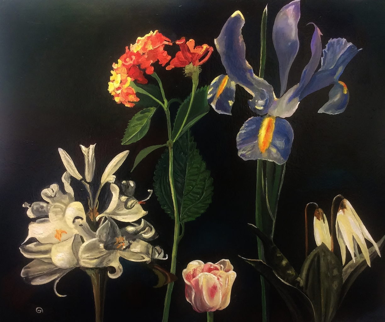 Olieverf Doek Op Kunstenaar Peter Beeldend Almere Kunstschilder Olieverfschilderijen Boonstra "bloemen"