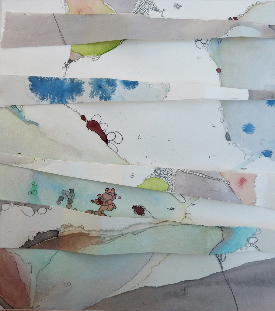 Aquarel en potlood op papier, gevouwen en gesneden.