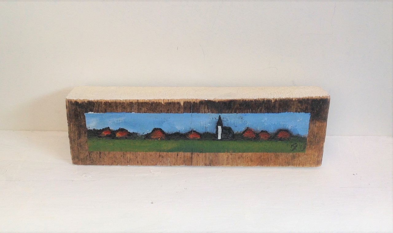 Texels werk. Skyline Den Hoorn in miniatuur. 7 x 25 x 5 cm. VERKOCHT.