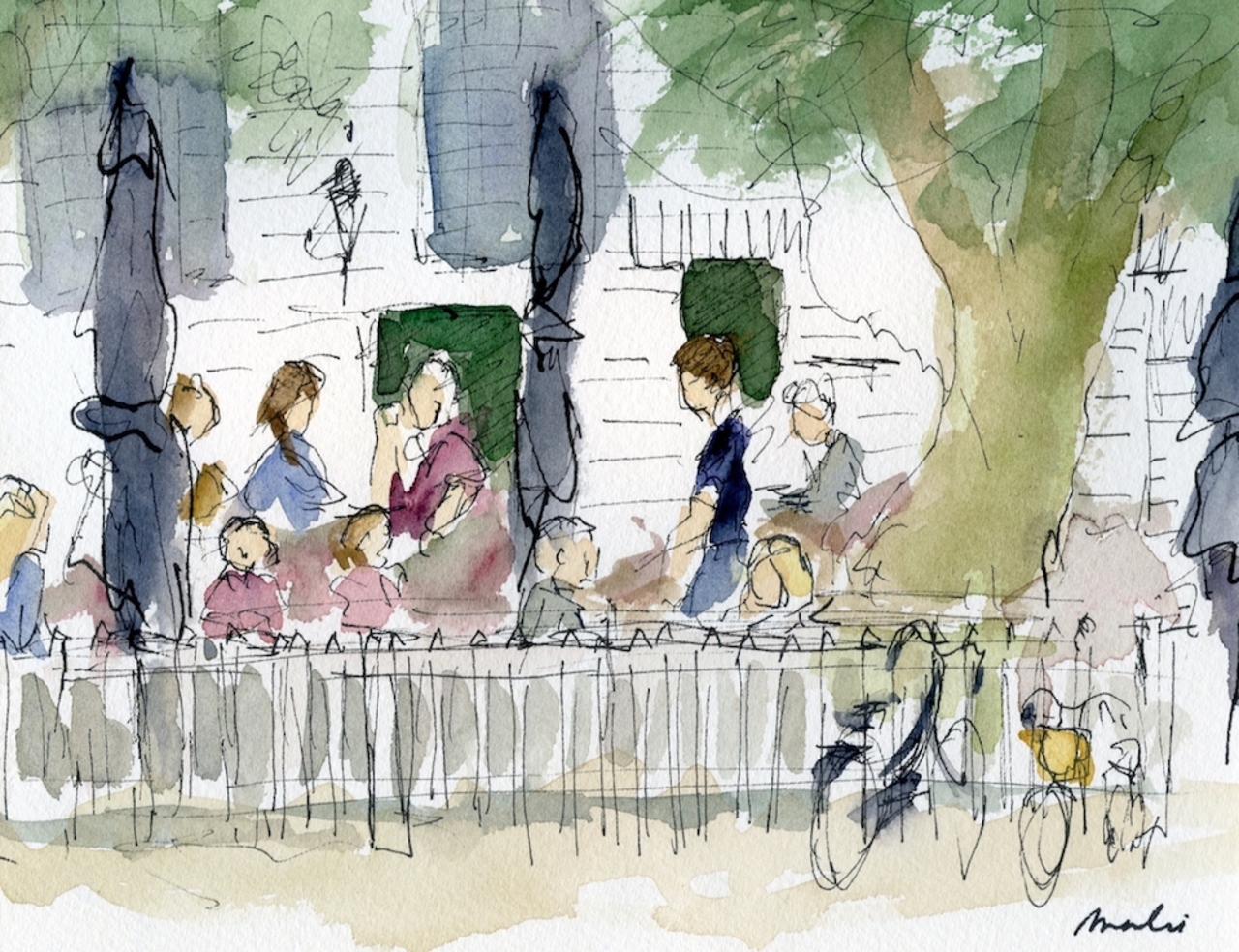 Ik schilder het dagelijkse leven. Scènes die mij frapperen leg ik vast in schetsboekjes en daaruit ontstaan schilderijen.